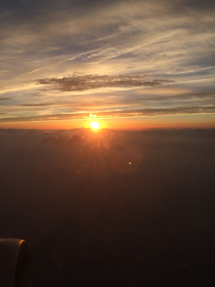 Ich sitze also allein auf der einen Seite des Gangs, auf der anderen Seite des Gangs ist noch eine ganze Gruppe an Plätzen um einen Tisch herum frei. Ich hab also rundum meine Ruhe. Ich klappe meinen kleinen Tisch aus, hole Birchermüsli und Obst aus der Tasche und freue mich auf ein Frühstück. Ganz in Ruhe.